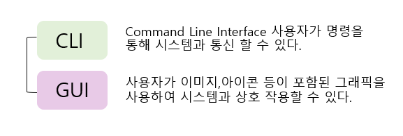 - 쉘(shell) : 사용자와 컴퓨터 하드웨어 또는 운영체제간 인터페이스