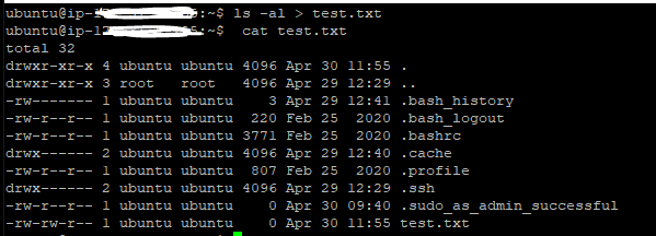 - 다시 ls -al > files.txt 를 하면 앞전에 file에 넣었던 내용이 덮어 쓰여진다.