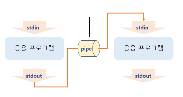 응용프로그램의 출력을 그 다음 프로그램의 입력으로 바꿀 때 많이 사용한다.