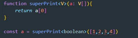 하지만 경우에 따라서 더 구체적으로 하고 싶은 때 위와 같이 함수에 type을 명시해 줄수 있다. 그렇다면 ts는 이제 제네릭이 boolean이라는 것을 알게 되고, 위의 명시된 superPrint 함수의 정의와 같이 인자로도 boolean type의 배열이 들어가야 한다.