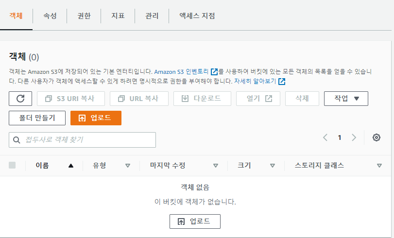 S3즉 원격의 storage에 image가 저장여부를 나타내는 화면이다.