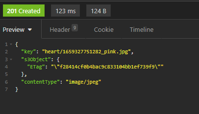 Promise<{ key: string; s3Object: PromiseResult<AWS.S3.PutObjectOutput, AWS.AWSError>; contentType: string; }> ... return { key, s3Object, contentType: file.mimetype };- key : S3에 저장이 되고 나서, S3저장한 key를 의미한다.