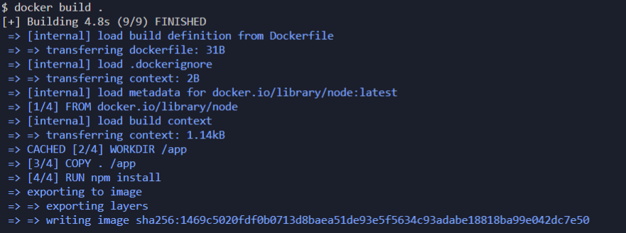 터미널에 위와 같은 명령어를 다시 실행하여 custom image를 기반으로 Container를 실행하면 노드 Application이 다시 실행된다.