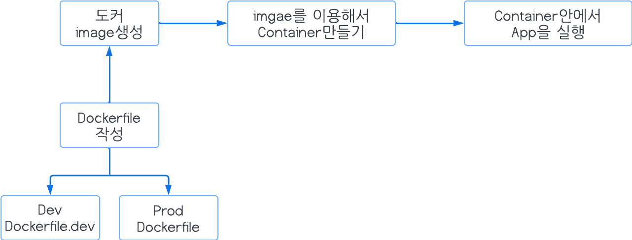 지금 까지는 한가지의 Dockerfile을 만들었지만 실제로는 개발단계를 위한 것과 실제배포를 위한 Dockerfile을 따로 만드는 것이 좋다. 그러므로 개발을 위한 Dockerfile이 아닌 Dockerfile.dev라는 파일을 작성한다.