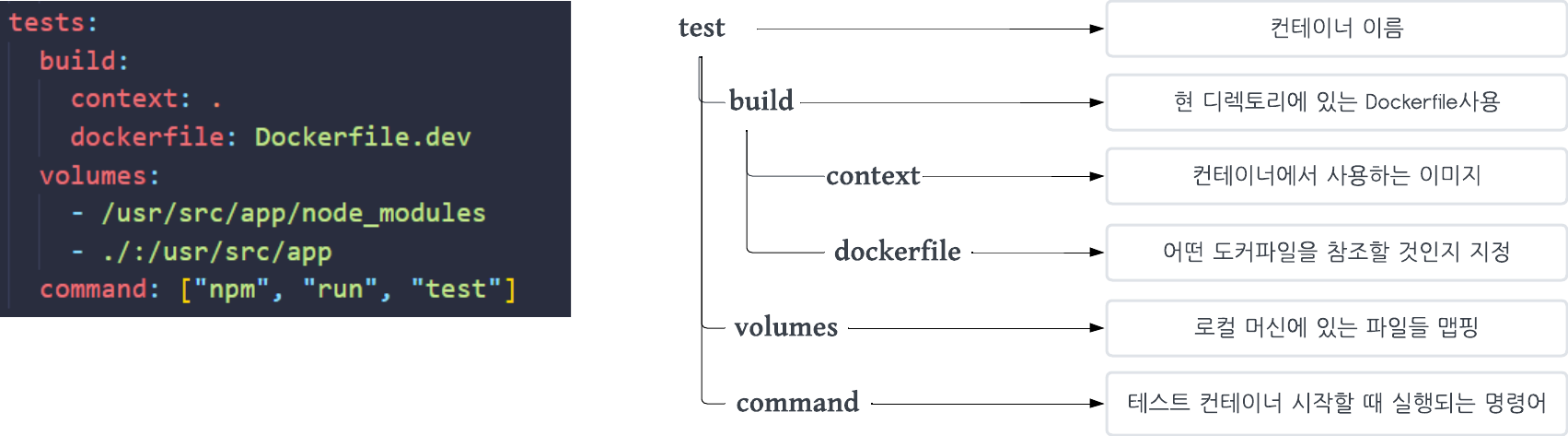 Docker 환경에서 test를 하는 것은 docker-compose 파일에 새로운 Container를 추가하는 개념이다.