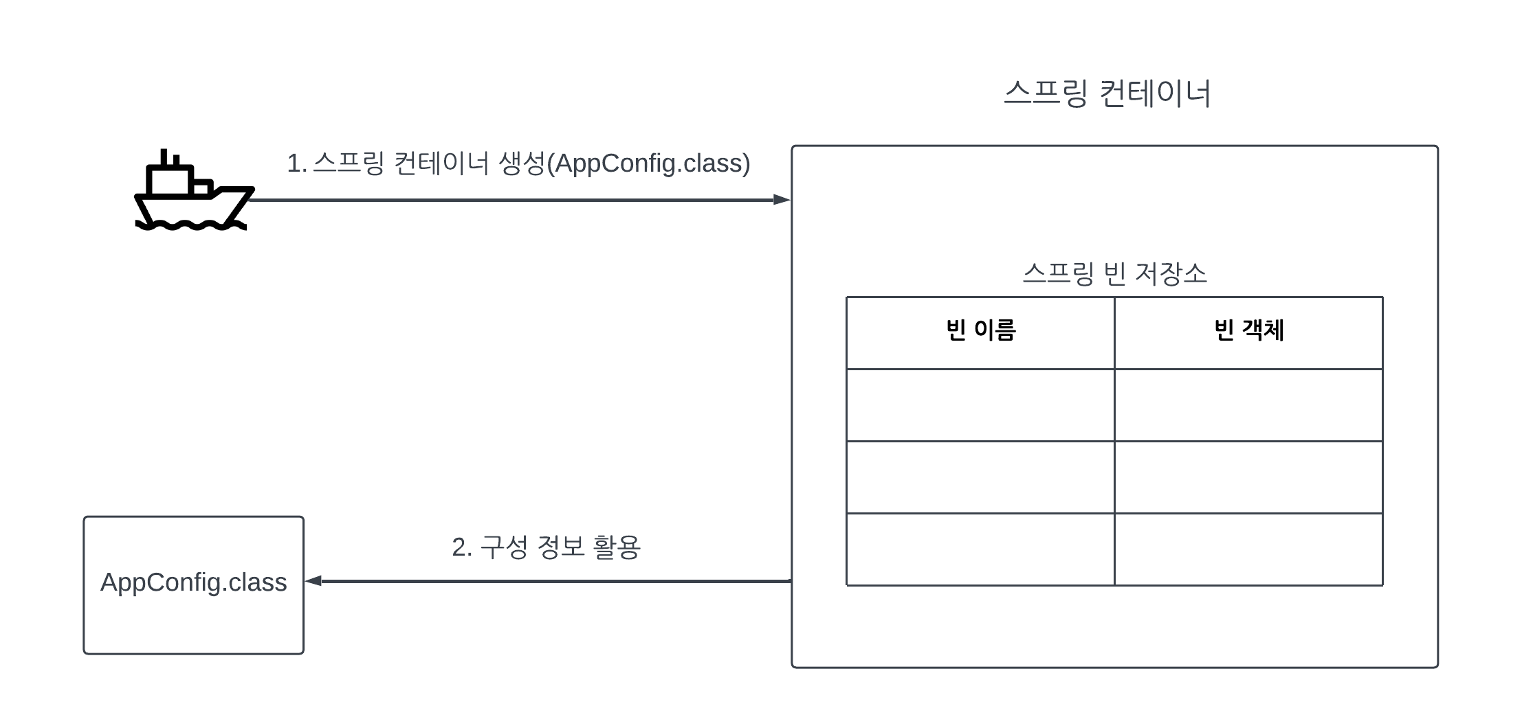 - 스프링 컨테이너는 파라미터로 넘어온 설정 클래스 정보를 사용해서 스프링 빈을 등록한다.