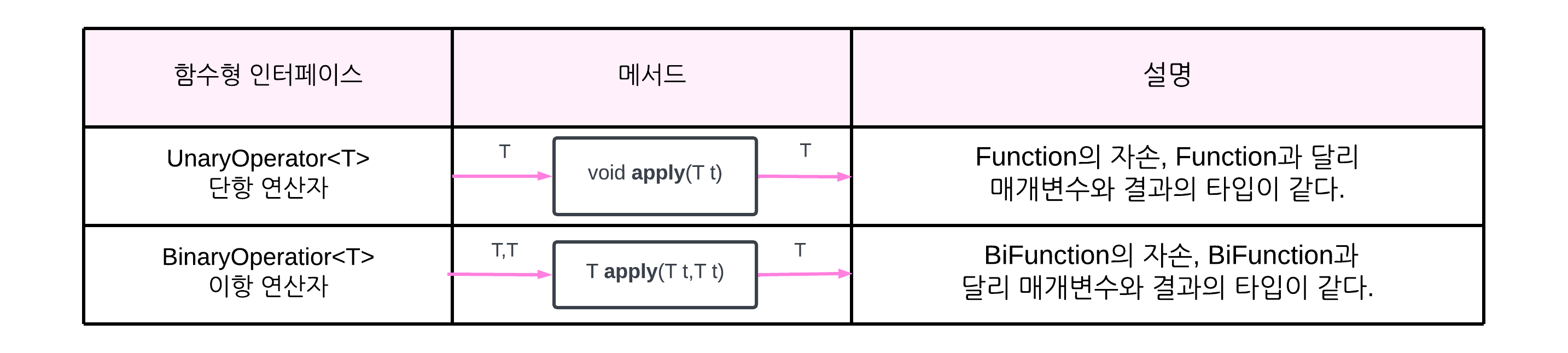 ▶매개변수 타입과 반환타입이 일치하는 일치하는 함수형 인터페이스