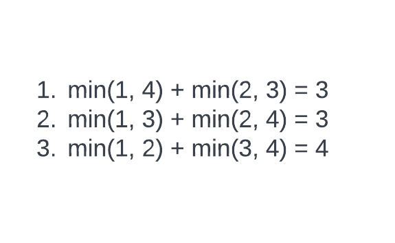 페어의 min()을 합산했을 때 최대가 되려면 결국 각각의 min() 조합이 가급적 머야 한다는 뜻이다.