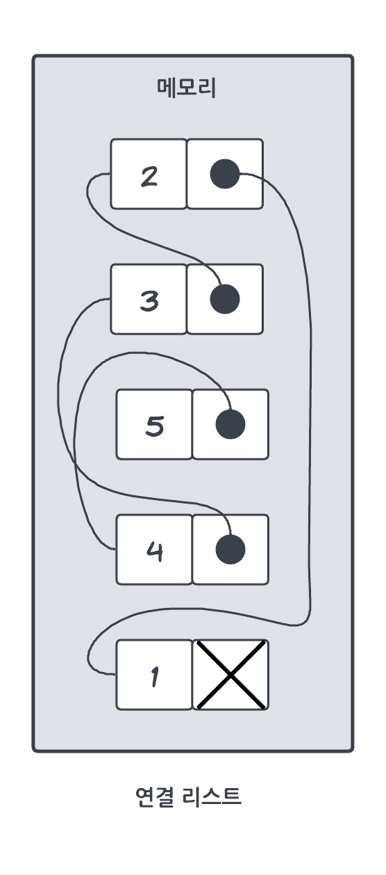 ⭐연결 리스트는 배역과 달리 특정 인덱스에 접근하려면 전체를 순서대로 읽어야 하므로 상수시간에 접근할 수 없다. 즉 탐색에는 O(n)이 소요된다. 반면, 시작또는 끝 지점에 아이템을 추가하거나 삭제, 추출하는 작업은 O(1)에 가능하다.