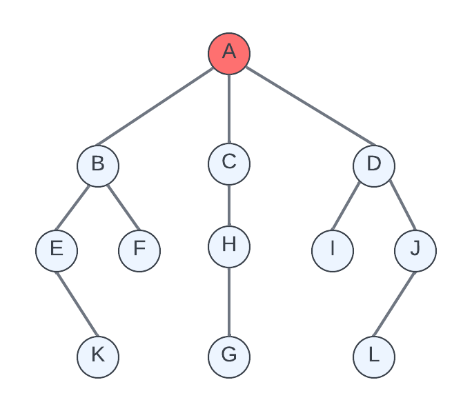 동일한 작업을 목표에 도달하거나 모든 정점의 탐색이 끝날때 까지 반복한다. 지금 까지 살펴 본것과 같이 우선 탐색은 하나의 길을 깊이 있게(수직으로 )찾아가는 방식이다.