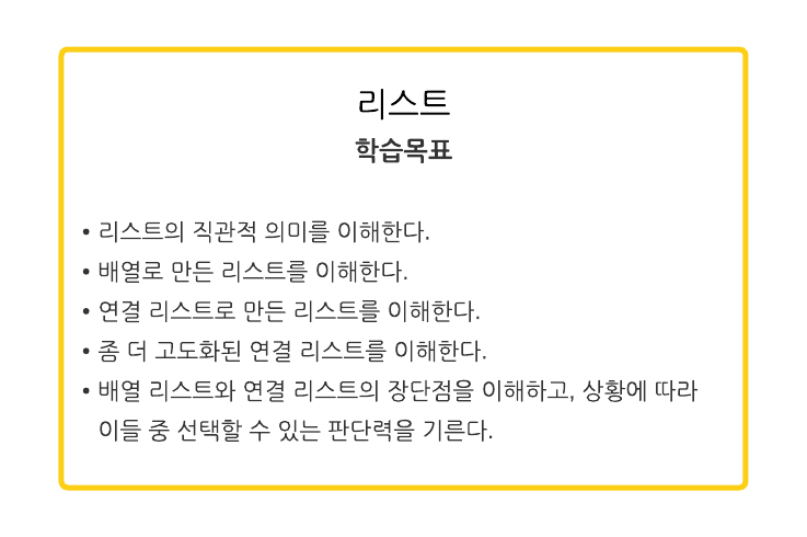 리스트의 내부가 어떻게 구현되는지 정확하게 이해하는 일이 중요하다. 그래야 리스트를 적절하게 이용할 수 있고, 필요에 따라 소스를 수정하거나 확장할 수 있다. 혹은 목적에 맞게 리스트를 직접 만들어야 할 때도 있다.