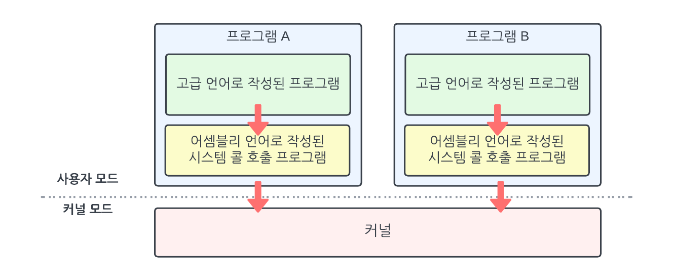 그림 01-08 사용자 프로그램은 래퍼 함수를 호출하면 끝