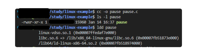 - 파일크기는 16KiB정도로 libc를 정적 링크했을 때 보다 수십 분의 일 크기