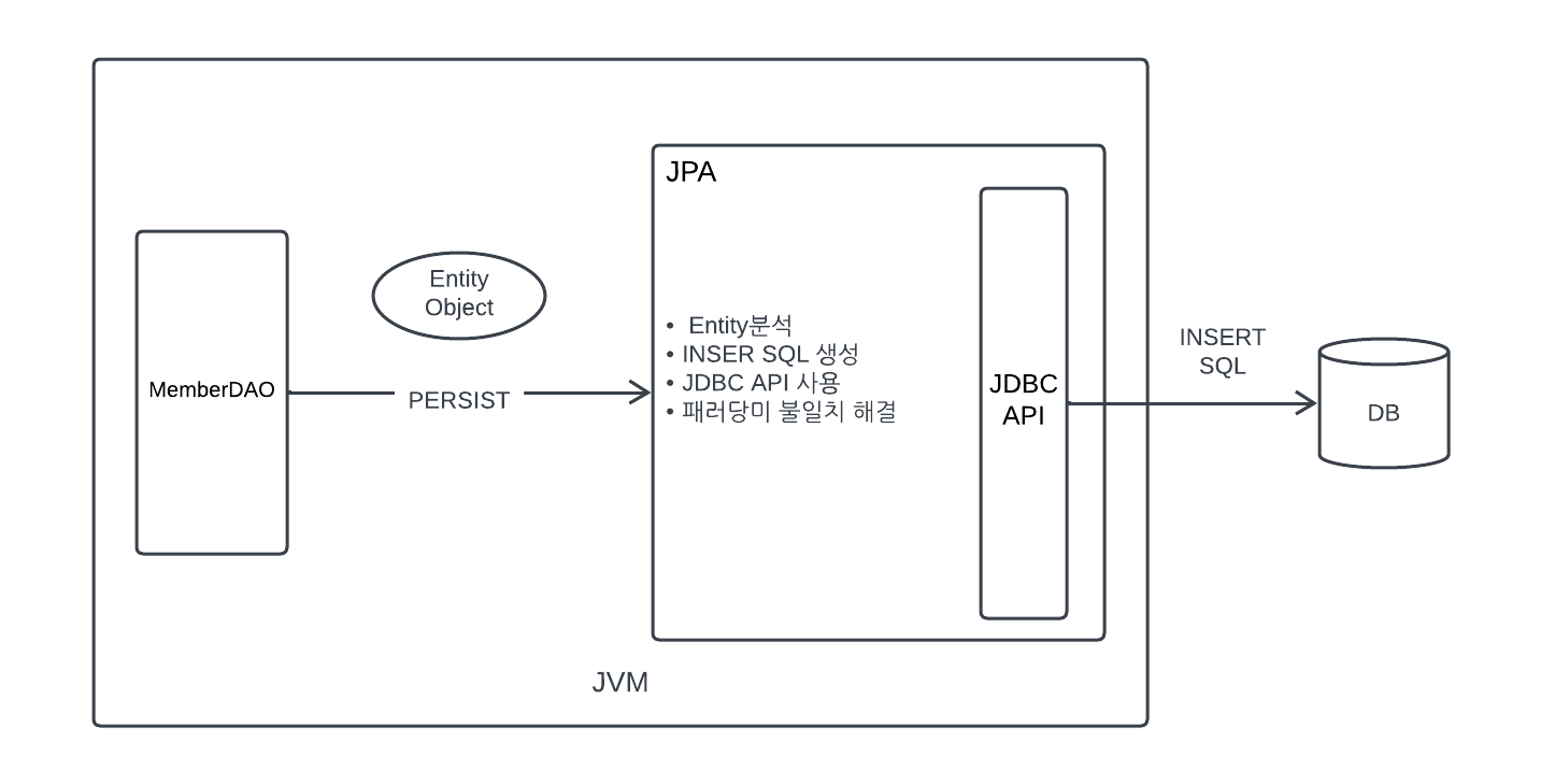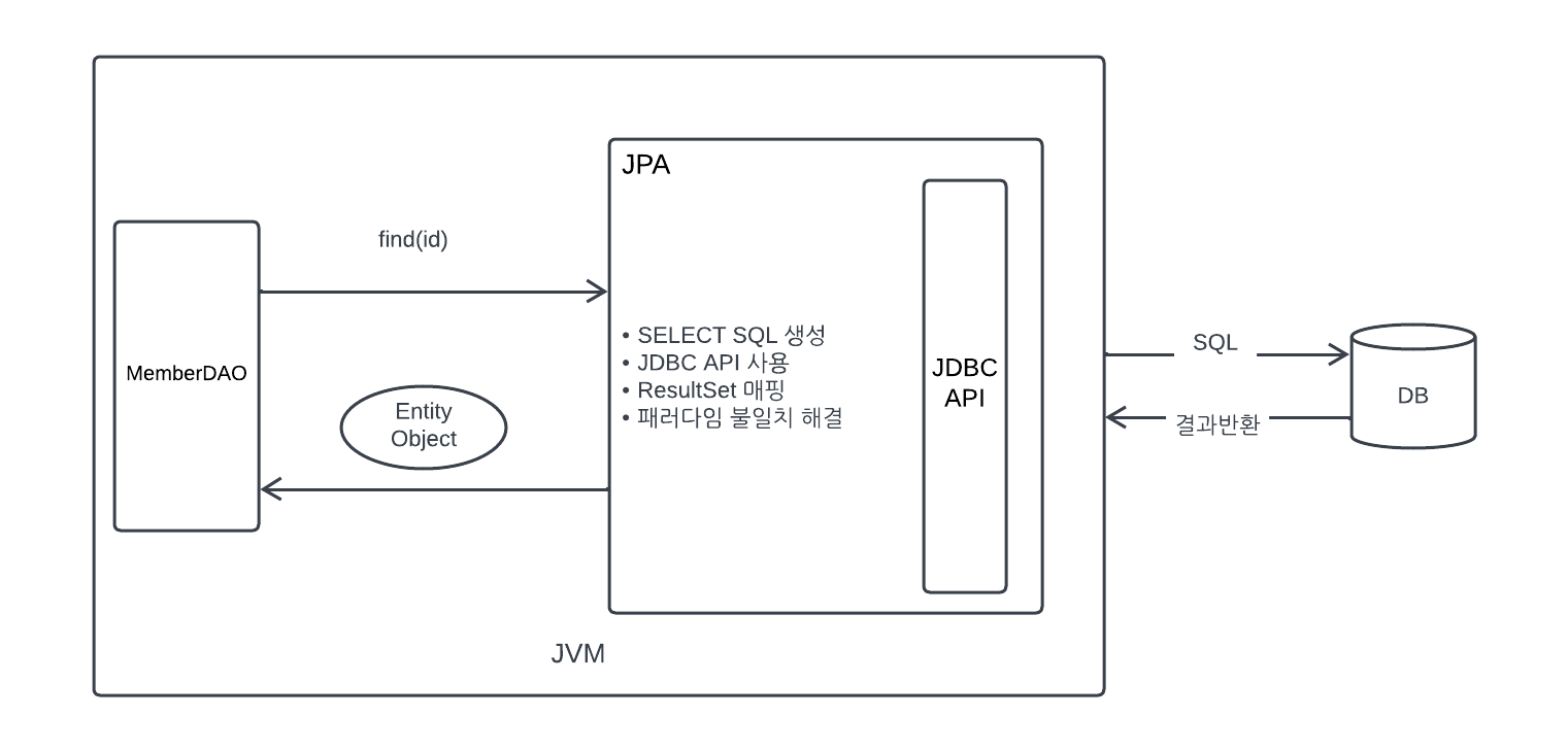- 객체에 새로운 필드를 추가해도 개발자가 수정해야했던 SQL과 JDBC API 코드를 JPA가 대신 처리해준다. 이로써 객체지향 언어가 가진 장점을 활용해 유연하고 유지보수하기 좋은 도메인 모델을 편리하게 설계할 수 있다