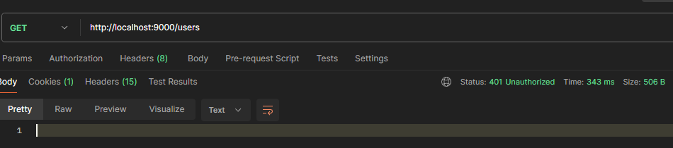 스프링 시큐리티가 적용된 상태에서 security password 없이 전체 user를 조회하는 위와 같은 uri를 호출하면 401 Unauthorized와 같은 오류가 발생하는 것을 확인할 수 있다.