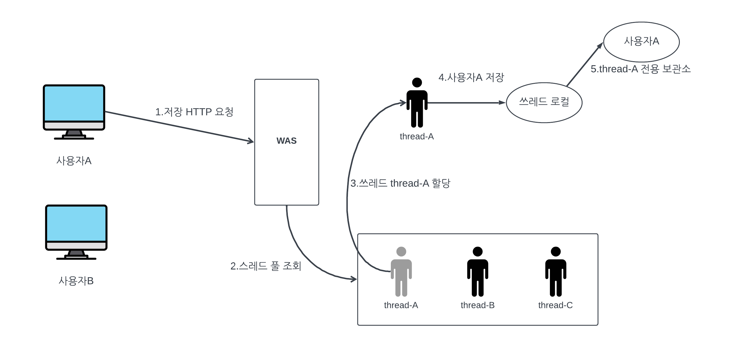 - thread-A는 사용자A의 데이터를 쓰레드 로컬에 저장한다.