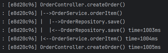실행 결과를 확인해보면 로그 추적 기능이 프록시를 통해 잘 동작하는 것을 확인할 수 있다.
