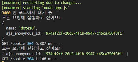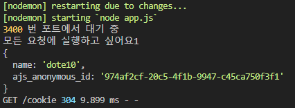 지정한 쿠키가 생겨서 console.log에 출력되는 모습을 확인할 수 있다.