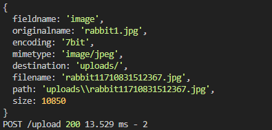 이미지가 정상적으로 upload되면 위와 같은 req.file 정보를 반환한다.