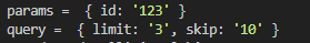 router.get('/:id',(req,res) =>{ console.log('params = ',req.params); console.log('query = ', req.query); res.send('ok'); })