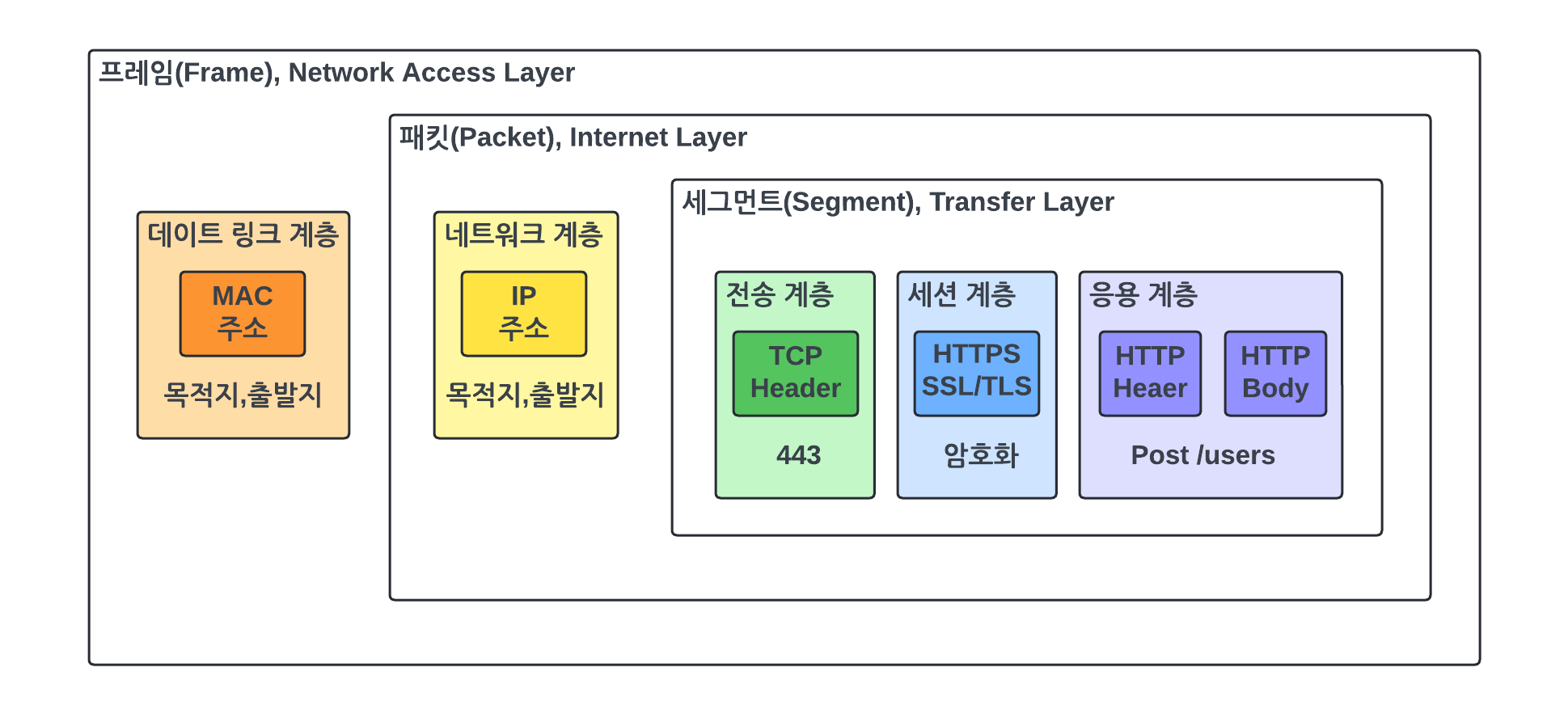- 표현계층 : 데이터의 암호화 및 복호화 프로세스를 관리한다. SSL/TLS는 데이터를 암호화하여 전송 전데 보호하고, 수신 측에서 이를 복호화할 수 있도록 한다. 이는 데이터의 기밀성과 무결성을 보장하는데 필수적이다.