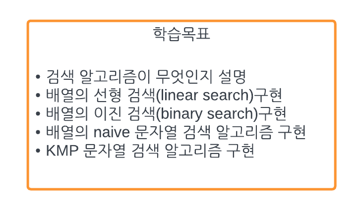 function binarySearch(arr,findOne){ let middle = Math.floor((arr.length)/2) let left = 0; let right = arr.length -1; while(right != left){ if(arr[middle] === findOne) return middle; if(arr[middle] > findOne){ right = middle; middle -= Math.ceil((right - left)/2) } if(arr[middle] < findOne){ left = middle; middle += Math.ceil((right - left)/2) } } return -1; }[출처 - JavaScript 알고리즘 & 자료구조 마스터클래스 - 저, ColtSteele]