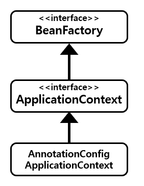 - BeanFactory를 직접 사용하는일은 거의 없다. 부가기능이 포함되 ApplicationContext를 사용한다.